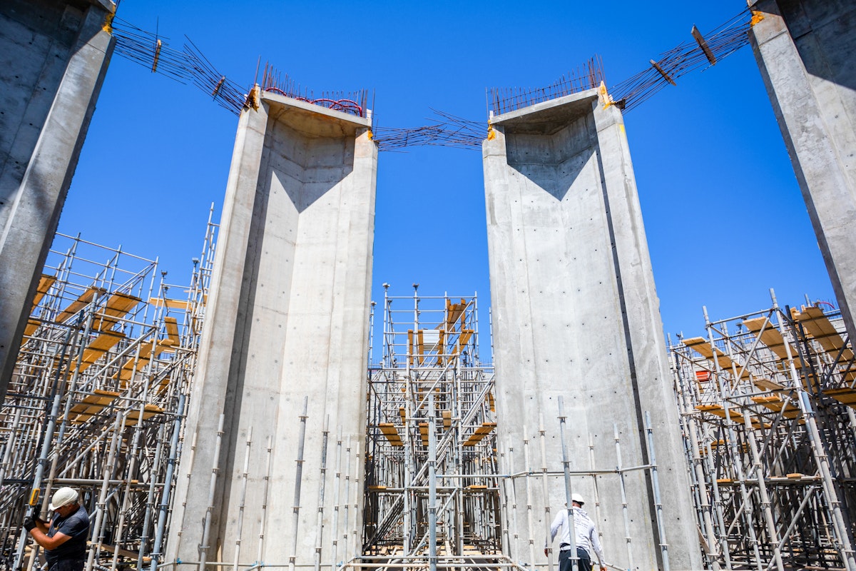 The concrete pour for the central plaza and floor of the main edifice this week signifies a new stage in the project, as two portal walls near completion.