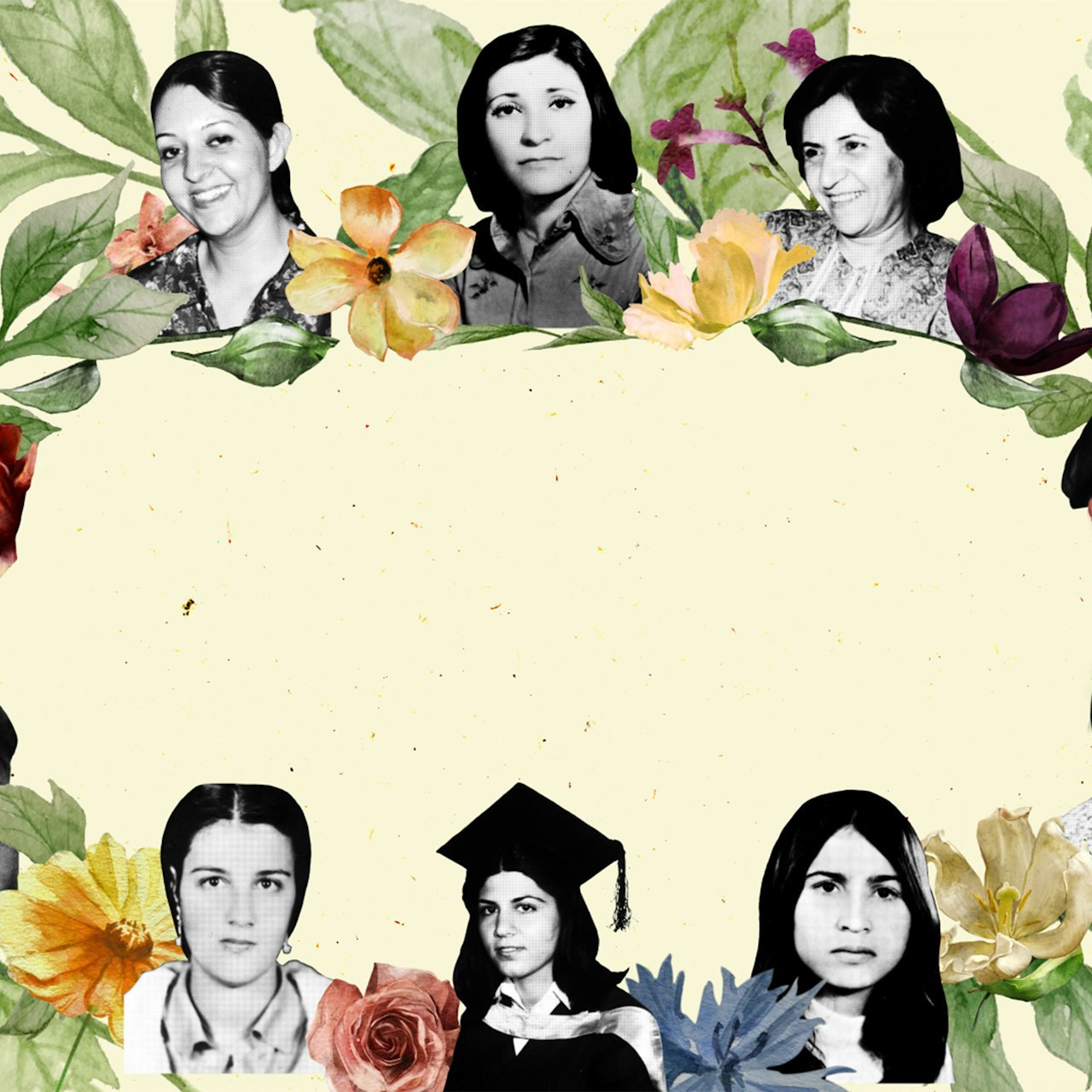 Collage de papel que simboliza la valentía de las mujeres bahá’ís que defendieron su creencia en la justicia, la igualdad y la veracidad