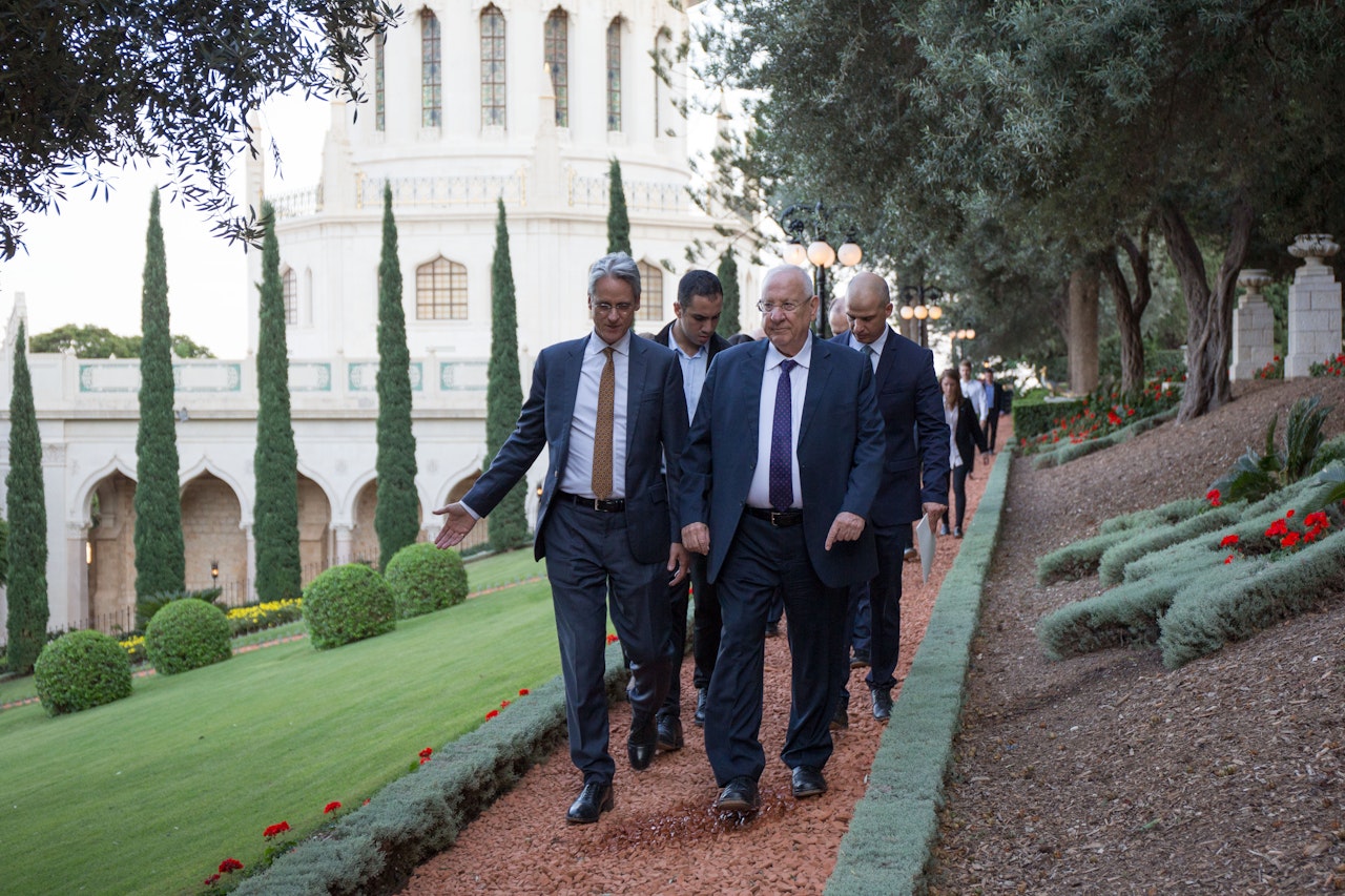 مرکز جهانی بهائی — دیروز رئیس جمهور اسرائیل آقای رووین ریولین به احترام دویستمین سالگرد تولد حضرت باب به حیفا آمد.