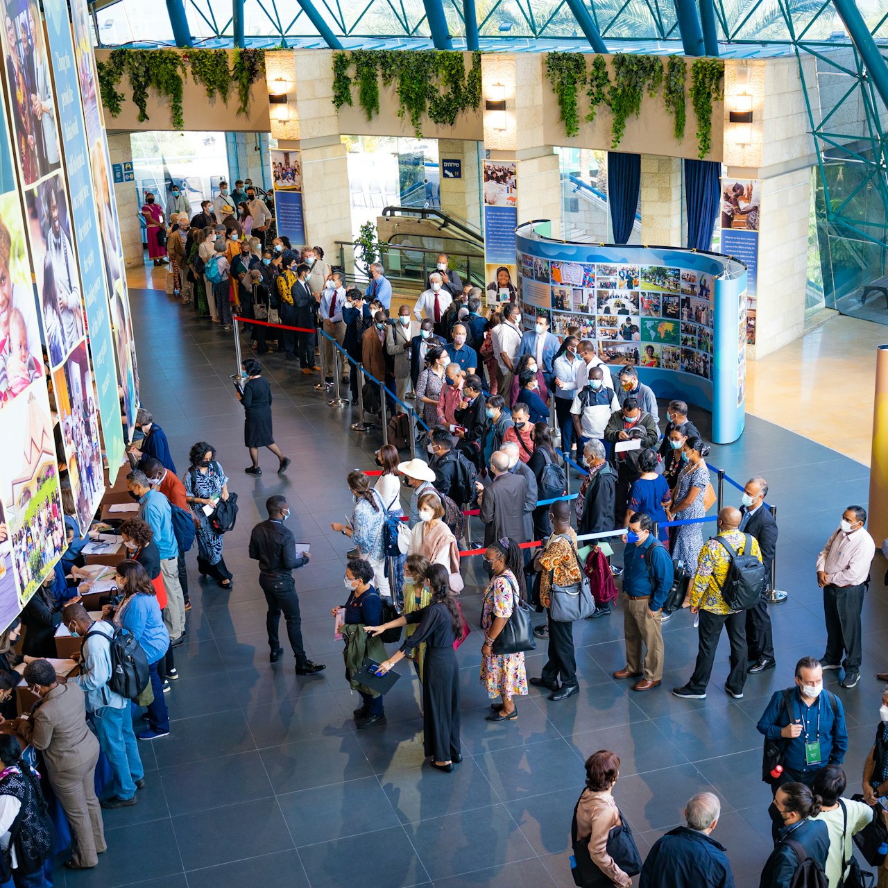طی کانونشن بینالمللی، این نمایندگان که تنوع نوع بشر را نشان میدهند در جلسات مشورتی شرکت نموده و هیئت حاکمهٔ بینالمللی دیانت بهائی، بیت العدل اعظم، را انتخاب خواهند کرد.