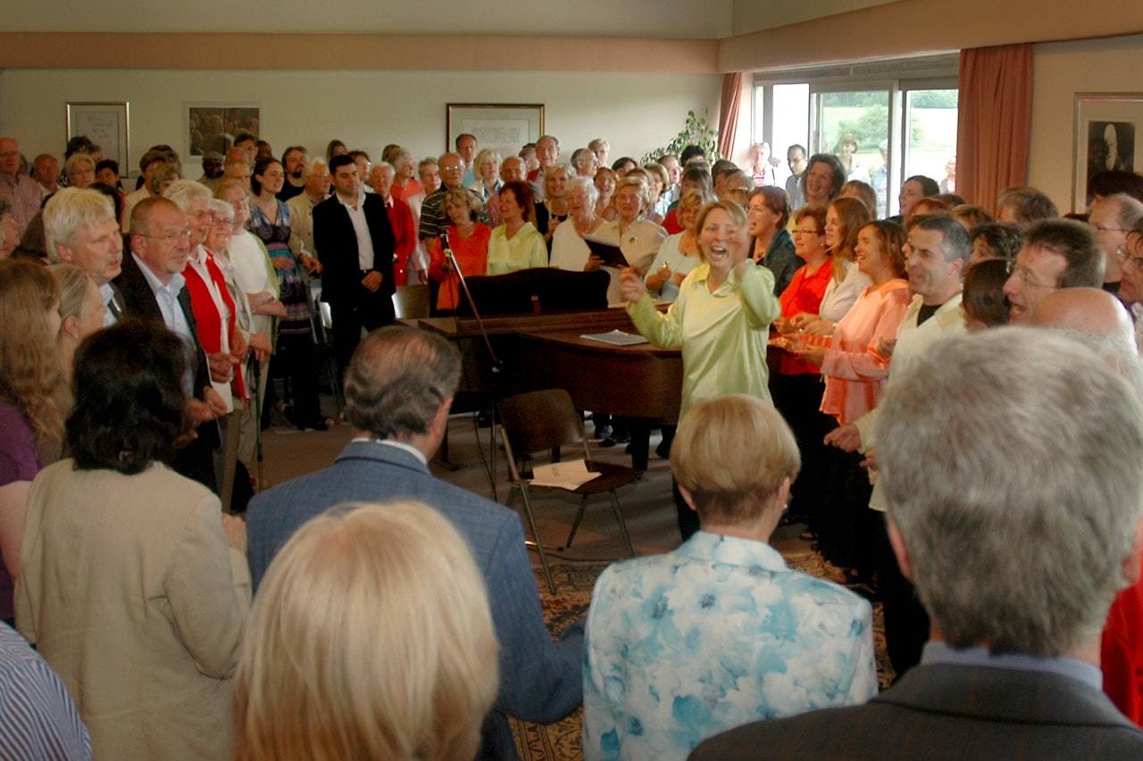 رهبر اصلی گروه کر که رهبری دو گروه کر سنتی و کر مدرن را با حدود سی نفر عضو بر عهده داشت از داشتن موقعیت اجرای برنامه در معبد بهائی اظهار خوشوقتی و امتنان نمود.