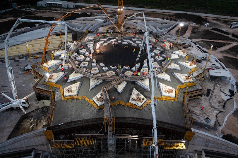 L’installation du marbre commence sous le treillis, les travaux extérieurs et le centre d’accueil des visiteurs d’Acre avancent, marquant des progrès majeurs sur le site.