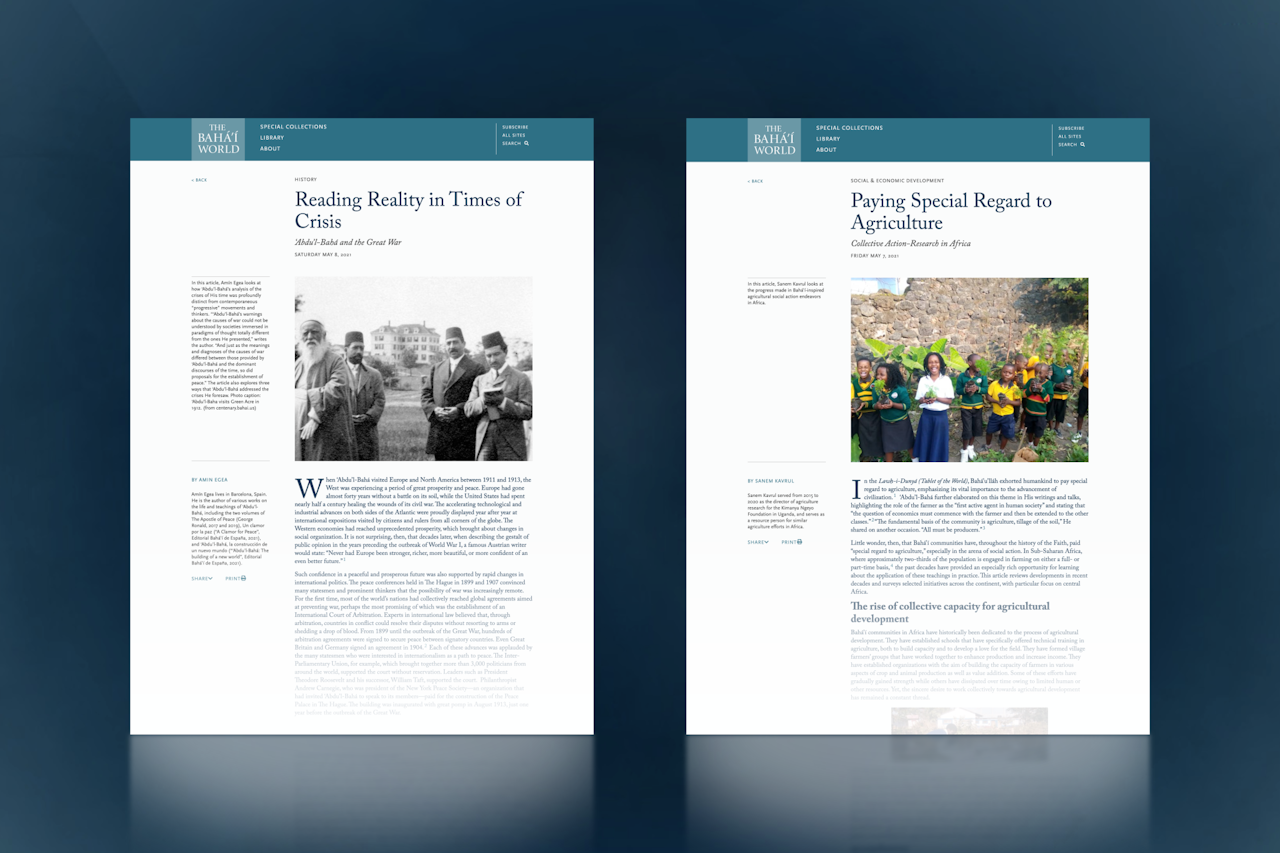 CENTRE MONDIAL BAHÁ’Í — La publication en ligne The Bahá’í World a publié deux nouveaux articles.
