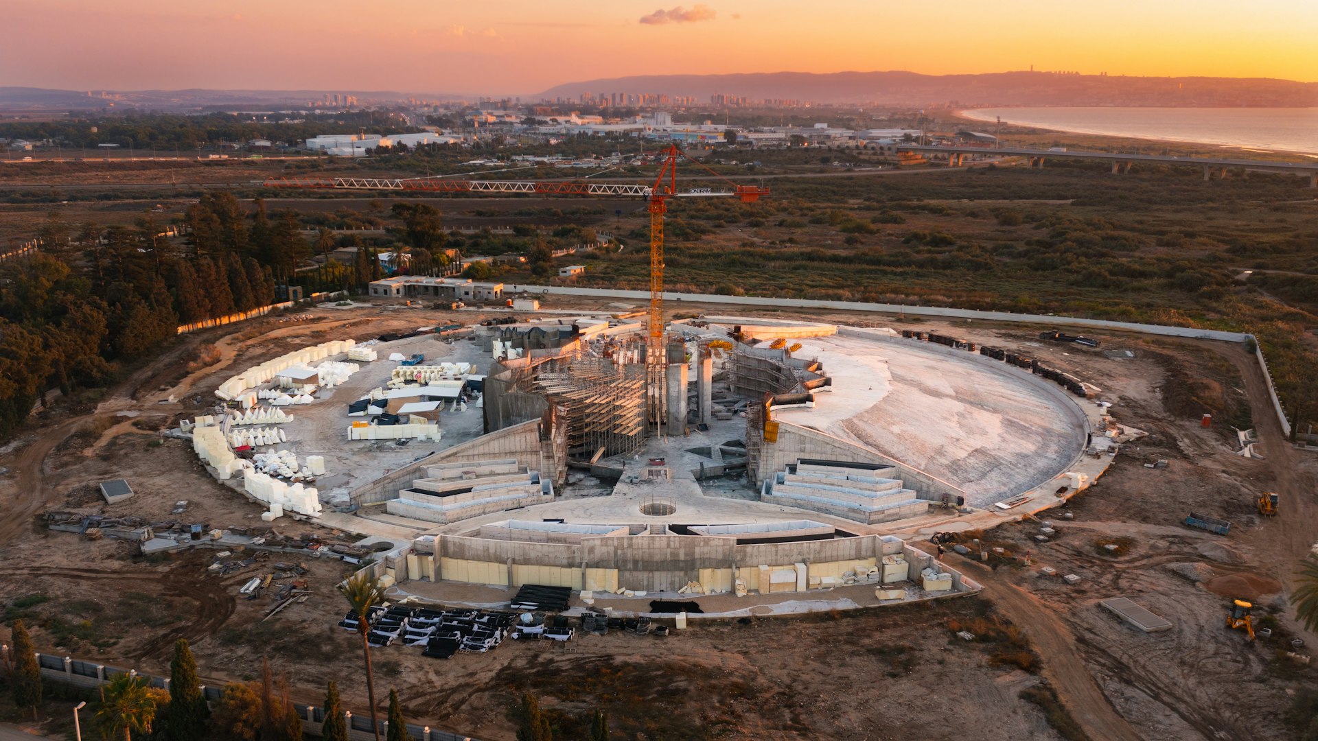 La construction du mausolée de ‘Abdu’l-Bahá se poursuit, les travaux sur la couche de base en béton de la berme ouest étant presque terminés.