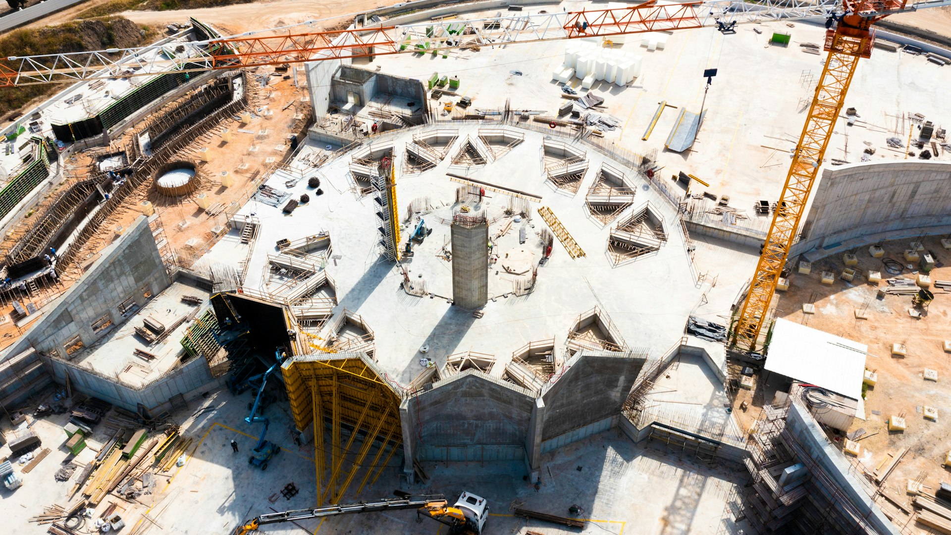 Des segments du mur plissé autour de la place centrale sont également en cours de construction tandis que les travaux sur les jardinières de la place nord progressent.