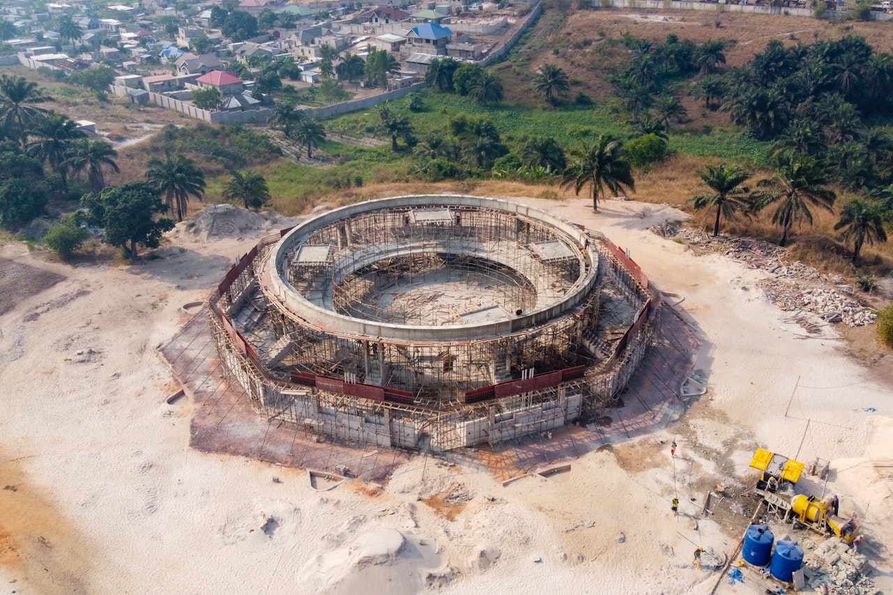 KINSHASA, Democratic Republic Of The Congo — Just months after the completion of the foundations of the Bahá’í House of Worship in the Democratic Republic of the Congo (DRC), striking structural elements that make up the lower portion of the central edifice are coming into view.