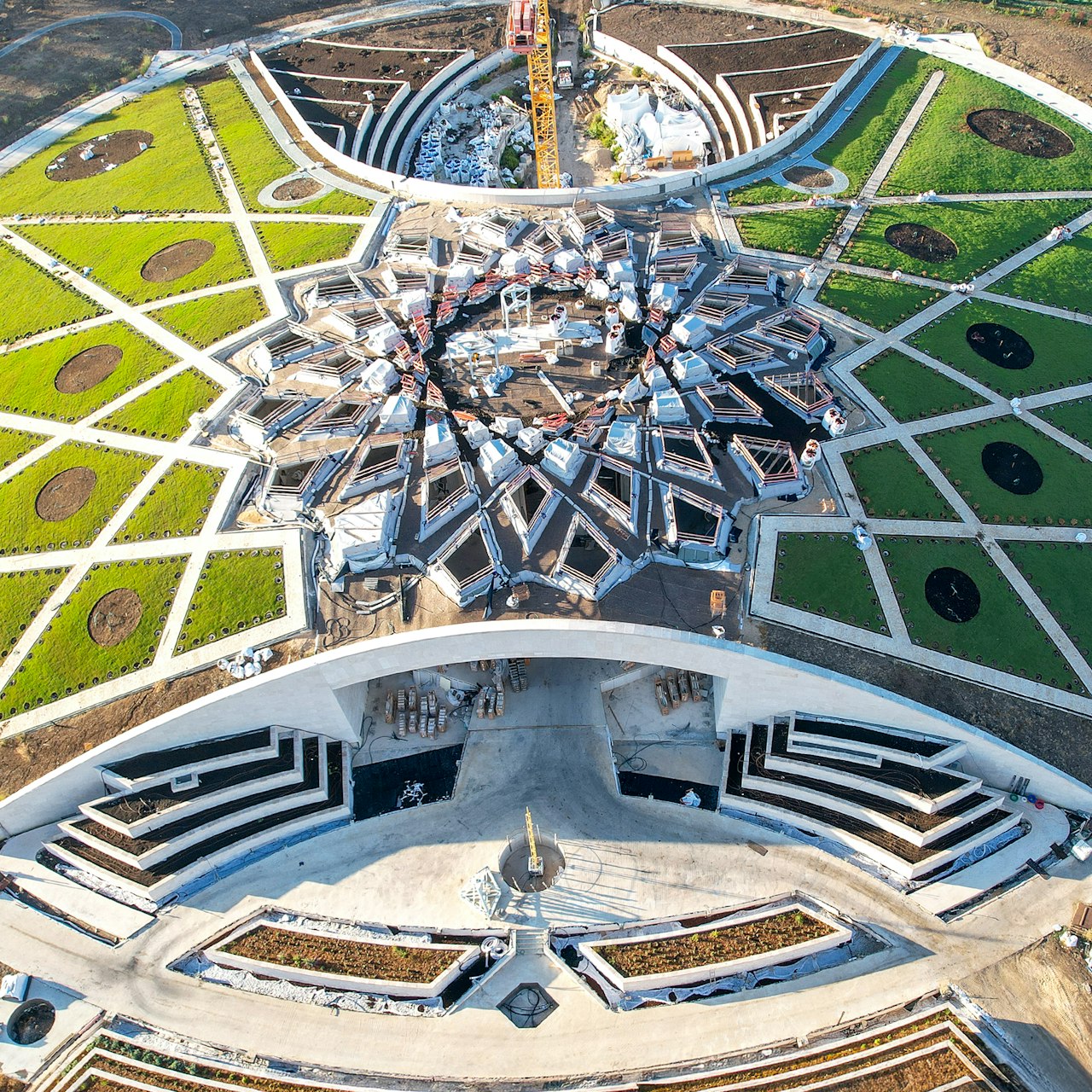 Aerial view of the site of the Shrine of ‘Abdu’l-Bahá from the south-west.