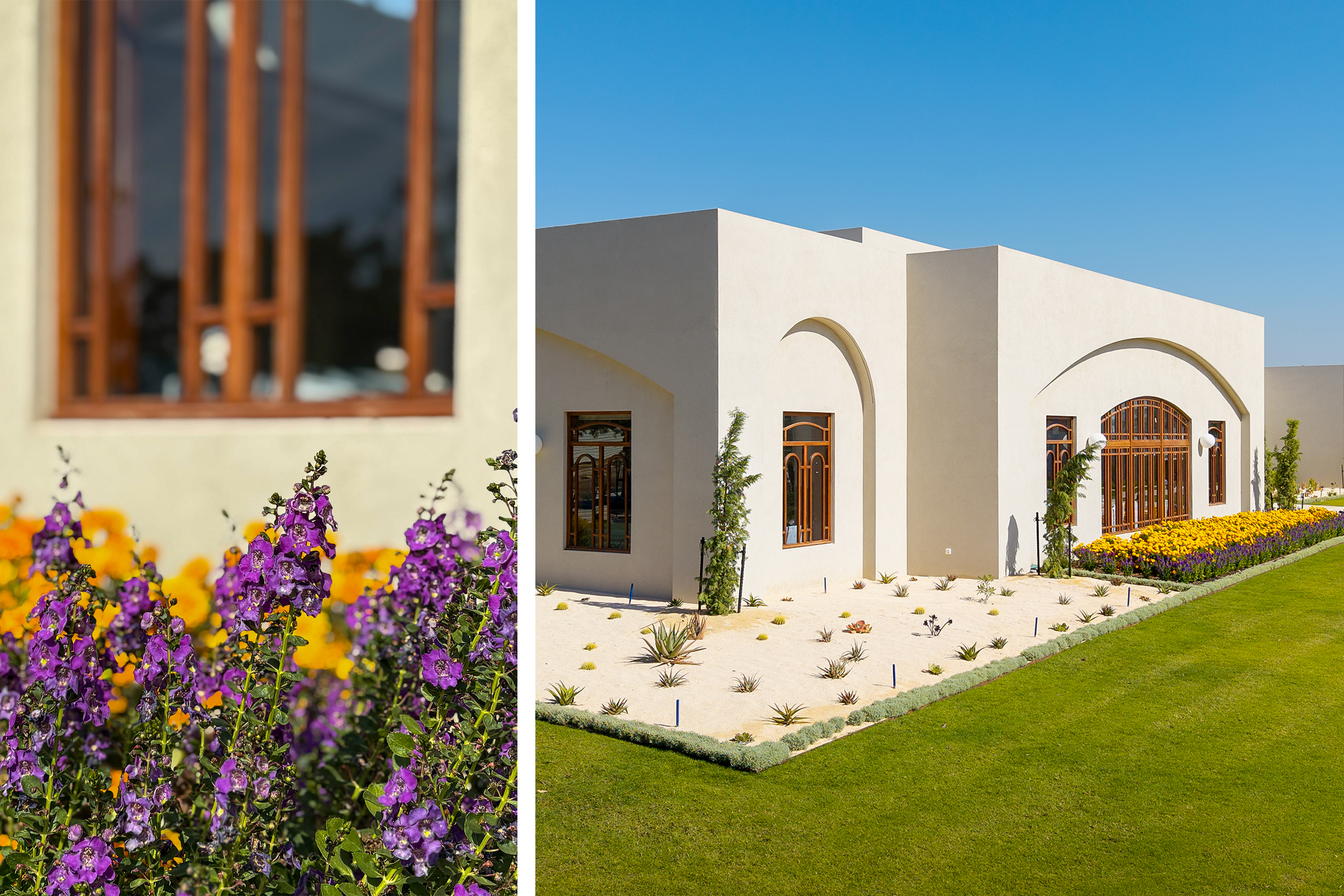 The courtyard is adorned with annual and seasonal flowers adjacent to the Visitors’ Centre with a few signature trees alongside larger ones that have been placed throughout that location.