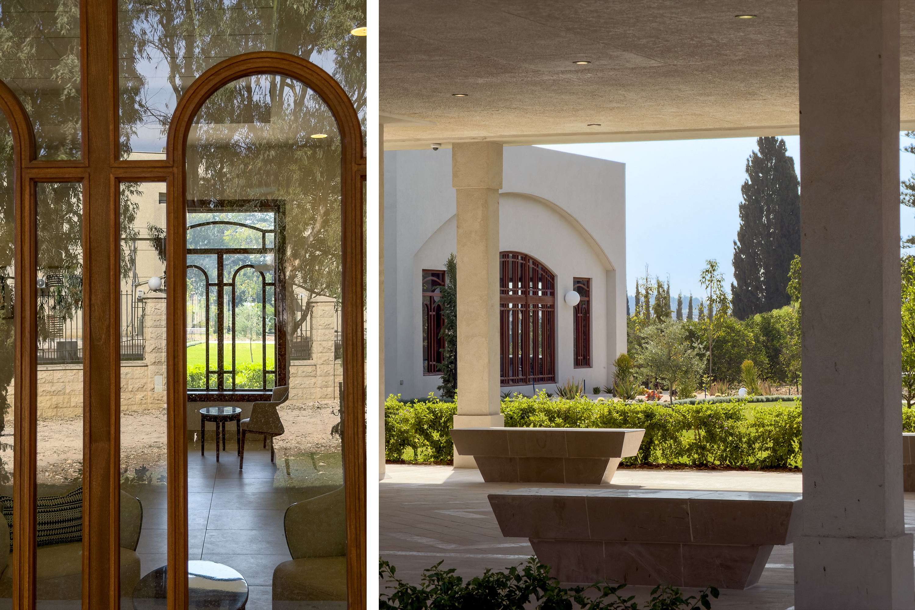 To the left is a view of one of the rooms of the Visitors’ Centre that has been prepared for the public; to the right the ‘Akká Visitors Centre can be seen from the entryway of the building that will welcome public visitors.