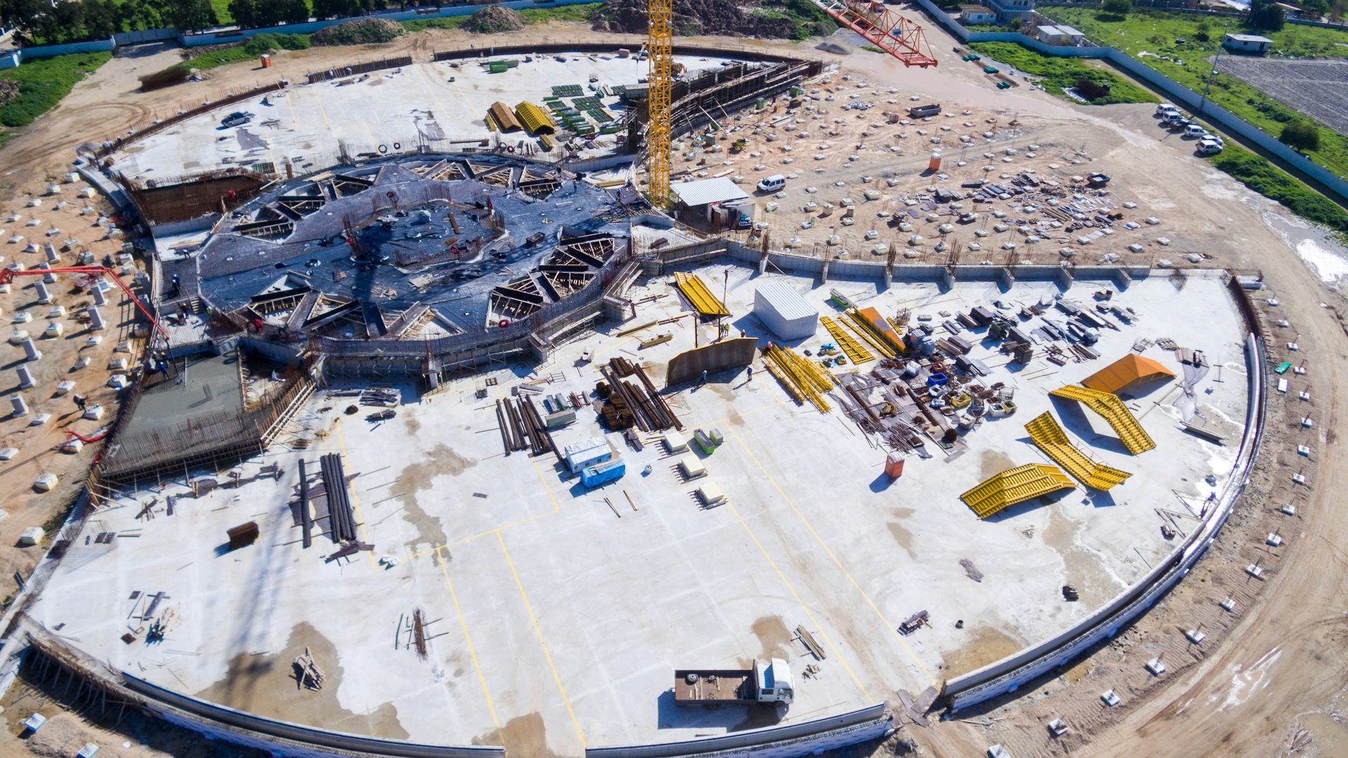 Custom-made formwork that will be used to mold plaza walls has been assembled as berm walls rise and work on garden paths advances.